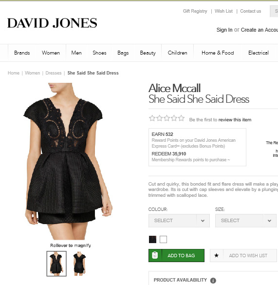 Structured dresses are also a must. Black and white can get tedious, so character outfits that have interesting cuts, angles and materials can create the drama we all look for in an outfit. (See Alice McCall She Said She Said Dress from David Jones)